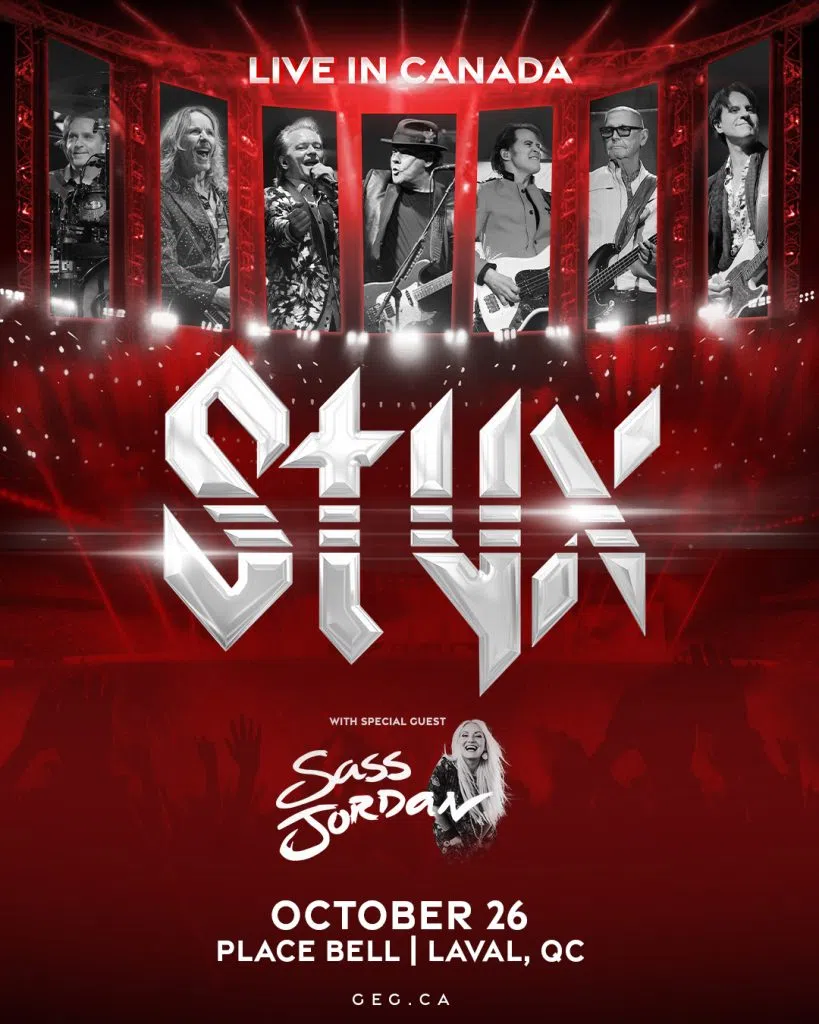 STYX will be on tour with Special Guest Sass Jordan and are stopping at Place Bell in Laval QC on October 26, 2026!